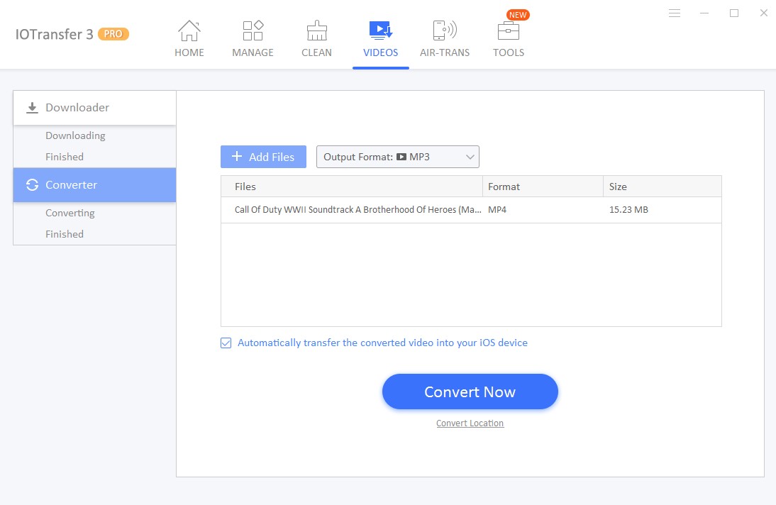 Furthermore, this new edition of IOTransfer 3 includes some new features that iPhone users would appreciate. It allows you to sync files between your iOS device and your PC via Wi-Fi without being connected. In addition to downloading online videos to your iPhone, IOTransfer 3 now allows you to convert videos to various file formats, including audio formats.